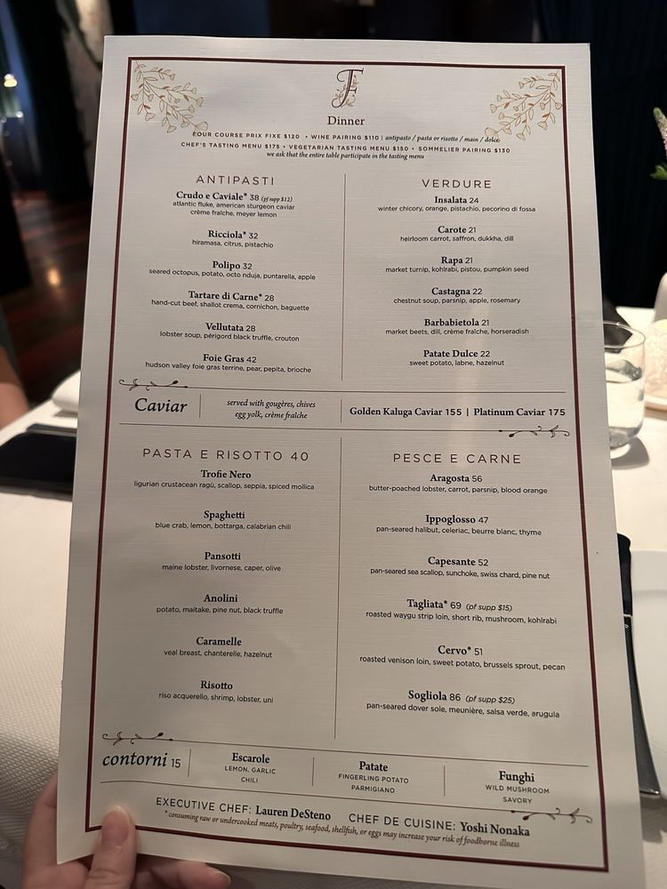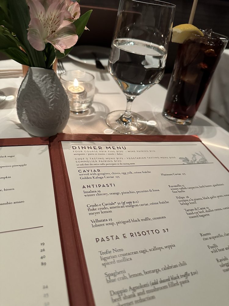 Ai Fiori, a French-Italian fusion restaurant located in New York, offers a sophisticated dining experience with a menu that combines the flavors of both cuisines. The elegant ambiance and attentive service make it a perfect spot for special occasions or intimate gatherings. With a focus on quality ingredients and expertly crafted dishes, Ai Fiori impresses with dishes like Trofie Nero pasta with Ligurian crustacean ragù and scallop, and black pasta paired with a glass of wine. The four-course prix fixe menu allows guests to sample a variety of delicious options. The extensive wine list compliments the menu perfectly, offering a selection to suit every palate. Whether dining for lunch, dinner, or a relaxing happy hour, Ai Fiori promises a memorable culinary experience.